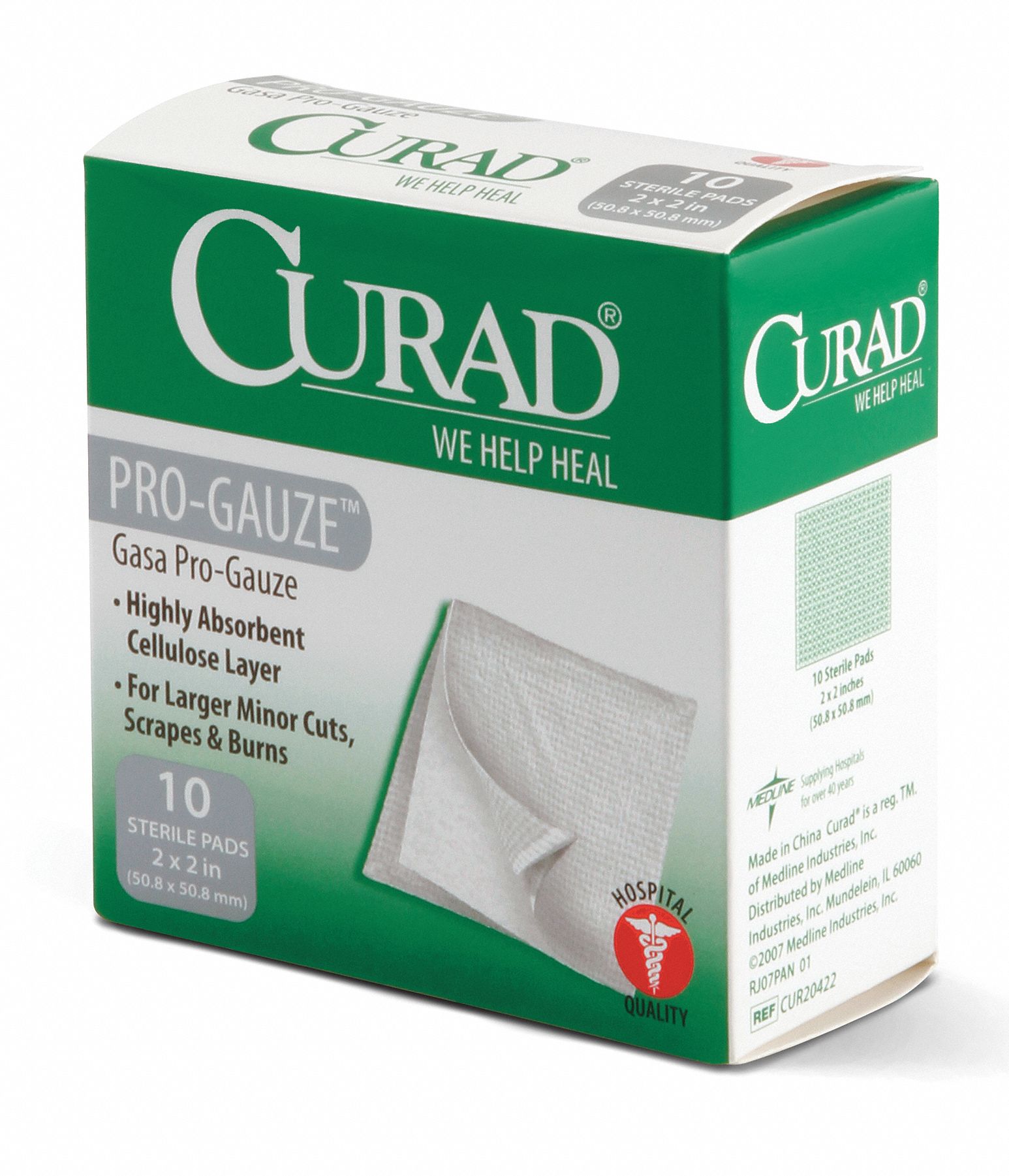 CURAD Gauze Pad,Sterile,White,PK10 11L750CUR20422RB Grainger